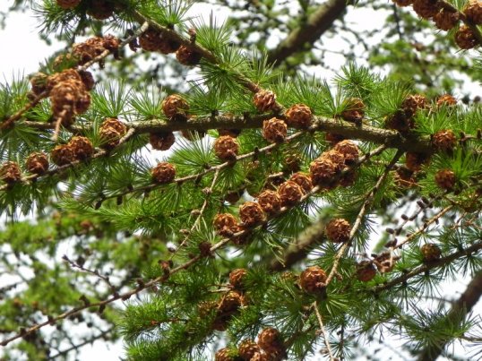 Die Zapfen, die bis zu 60 Samen beherbergen, öffnen sich erst im Frühling des 2. Jahres und verbleiben dann noch bis zu drei Jahren am Baum. Die Lärche hat ein schlankes spitzkegeliges Aussehen und ihre Äste stehen locker und sind meist an den Enden aufwärts gekrümmt.
